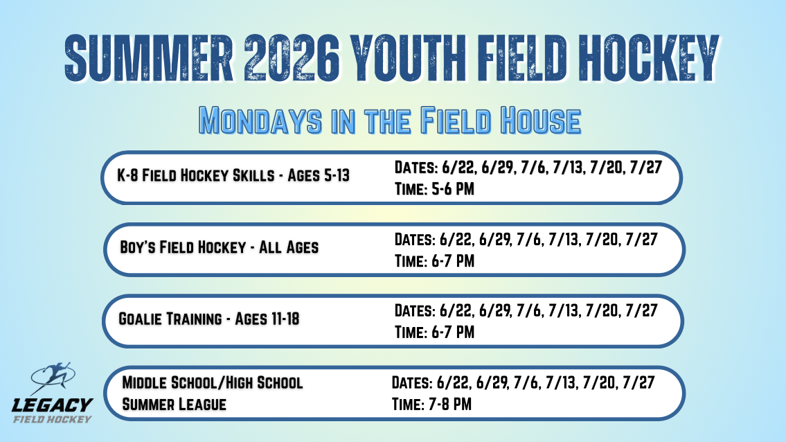 This program is designed for boys and girls of all skill levels looking to build and grow their field hockey skills in a fun, encouraging environment.
